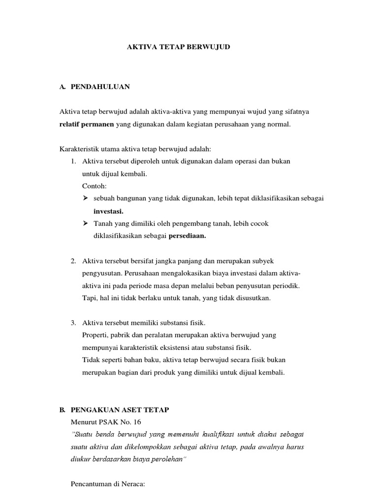 Selain itu, aktiva tetap juga bisa diartikan sebagai aset atau aktiva siap pakai yang tidak dimaksudkan untuk diperjualbelikan oleh perusahaan. Karakteristik utama aktiva tetap berwujud adalah: Juga perlu disepakati bahwa kebanyakan tidak dapat dihindarkan bahwa manfaat aktiva telah menurun. Muhammad ridwan last modified by: Beberapa jenis aktiva yang digolongkan sebagai aktiva tetap tak berwujud diantaranya adalah: Oleh karena itu perlunya untuk mengetahui serta memahami secara rinci tentang aktiva tetap baik aktiva tetap berwujud maupun tidak berwujud. Kedua pertimbangan tersebut adalah pertimbangan mengenai biaya awal dan amortisasi. Yaitu hak istimewa yang diberikan pemerintah kepada perseorangan atau perusahaan tertentu untuk memanfaatkan suatu penemuan melalui direktorat paten. Your user name created date: Aktiva tetap berwujud ialah aset tetap yang mempunyai bentuk fisik. Penyusutan aktiva tetap sering menjadi maslah bagi perusahaan. Hak sewa (lease hold) adalah hak yang diperoleh atas suatu sewa aktiva tertentu (sewa tempat usaha, sewa gedung, sewa mesin) yang biasanya menggunakan kurun waktu tertentu, disahkan oleh. Dengan cara demikian kita mampu mengaplikasikan apa saja yang terdapat di dalam aktiva tetap sebuah perusahaan.